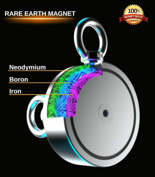 1200 LB Magnet Fishing Kit with Case - 2 Fishing Magnets in 1 (Double Sided Magnet) - with Grappling Hook, Heavy Duty 65FT Rope, Gloves, Carabiner, Foldable Bucket - Fishing Magnet Kit
