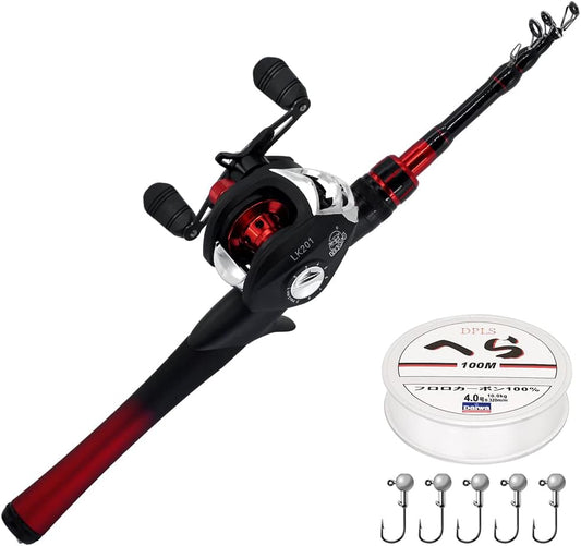 Kilitn Fishing Rod and Reel Combo, Baitcasting Combo Baitcast Reel 5 Foot Durable Fiberglass Telescopic Rod with Fishing Line Full Kits Comfortable Handle