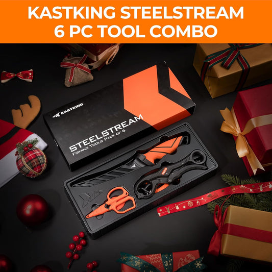 KastKing SteelStream 6pc Fishing Tool Kit - Corrosion Resistant Fishing Pliers with Lanyard, Fillet Knife, Floating Fish Lip Gripper, Fishing Braid Scissors, Tool Retractor, Fishing Gifts for Men