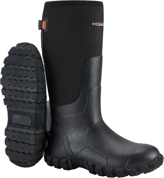 HISEA Upgraded Rain Boots for Men, Waterproof Insulated Rubber Neoprene Boots with Steel Shank, Durable Anti-Slip Outdoor Work Boots for Hunting Gardening Farming Fishing Mud Working, Adjustable Calf