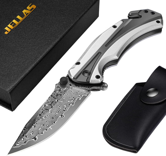 Damascus Pocket Knife for Men, Folding Knife Outdoor Tactical Knives for Hunting Fishing Camping, 3.7" Handmade Damascus Steel Blade, Liner Lock