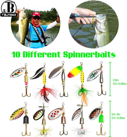 TB 10pcs Fishing Lure Spinnerbait, Bass Trout Salmon Hard Metal Spinner Baits Kit with 2 Tackle Boxes by Tbuymax