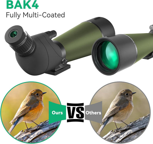 Gosky Updated 20-60x80 Spotting Scopes with Tripod, Carrying Bag and Quick Phone Holder - BAK4 High Definition Waterproof Spotter Scope for Bird Watching Wildlife Scenery1,Green