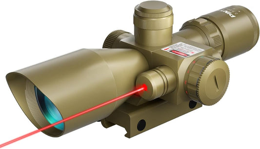Pinty 2.5-10x40 Red Green Illuminated Mil-dot Tactical Rifle Scope with Red Laser Combo - Green Lens Color