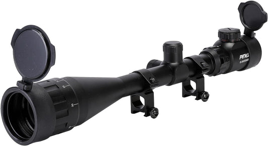 PINTY 6-24x50 Rifle Scope — AO Hunting Scope with Rangefinder Illuminated Optics Picatinny Mount Rings for Long Range Shooting Airsoft Sniper More — 1/8 MOA Gun Sight for Rifle or Crossbow