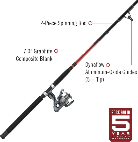 Quantum Optix Spinning Reel and 2-Piece Fishing Rod Combo, Durable Fiberglass Rod, Split-Grip EVA Foam Handle, Anti-Reverse Fishing Reel