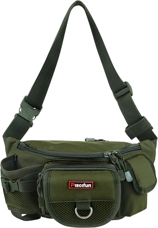 Piscifun Fishing Tackle Bag with Adjustable Waist Strap, Portable Multi-function Fanny Fishing Storage Pack, Water-Resistant Outdoor Fly Fishing Bag, Multiple Colors Available Small Fishing Bag