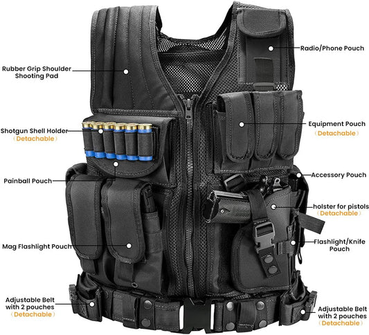 MGFLASHFORCE Tactical Airsoft Vest Adjustable Modular Paintball Vest