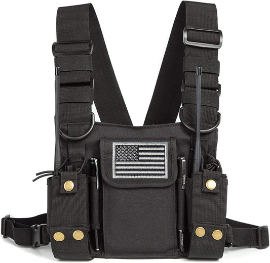 LUITON Radio Chest Harness with Reflective Strips Shoulder Holster Radio Vest Holder Two Way Radio Vest Rig Walkie Talkie Case with Front Pack Pouch for Motorola/Midland/Baofeng/Retevis