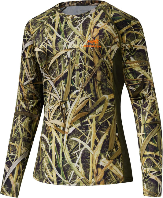 BASSDASH Women’s Camo Hunting Shirt Long Sleeve UPF 50+ Sun Protection Performance Tee Fishing Hiking