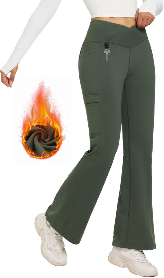 BALEAF Women's Fleece Lined Pants Warm Winter Thermal Water Resistant Flare High Waist